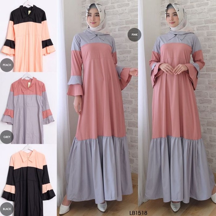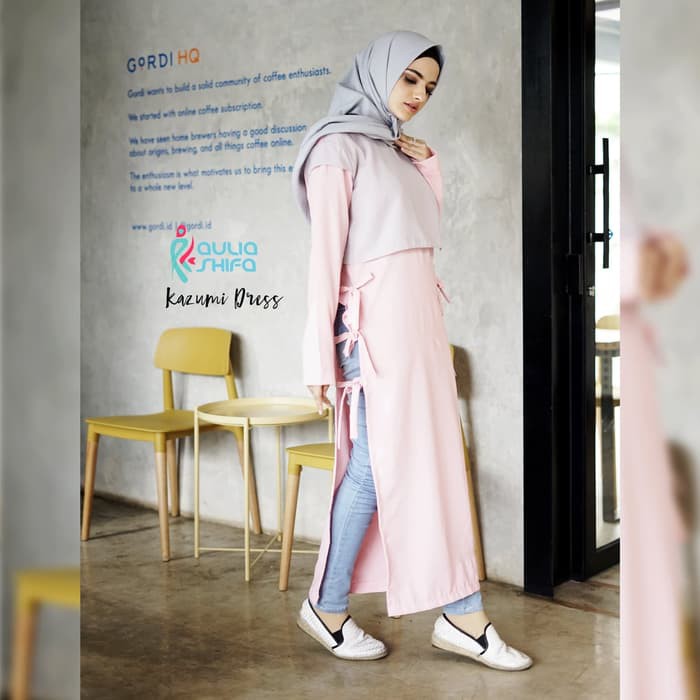 Gamis Muslim Kazumi Dress Warna Pink Kombinasi Abu Abu Shopee Indonesia