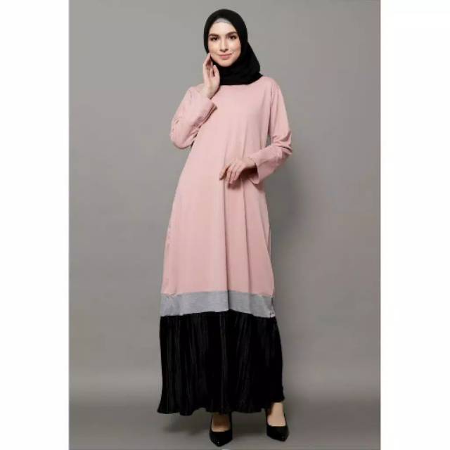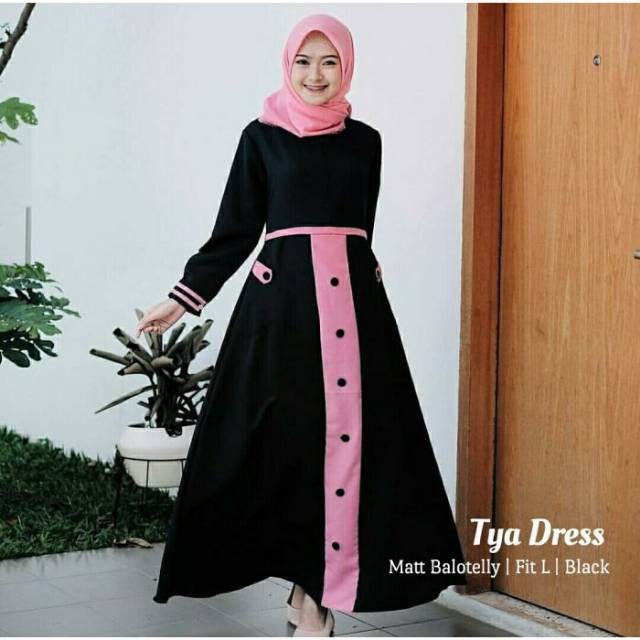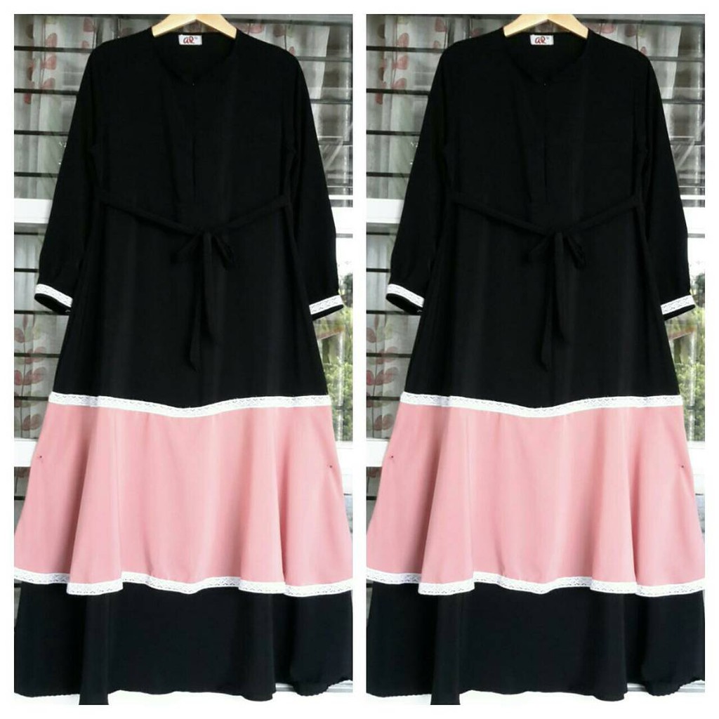 Jual Baju Muslim Long Dress Gamis Maxi Kombinasi Warna Pink Hitam Terbaru Jakarta Barat Ronshopingonline Tokopedia