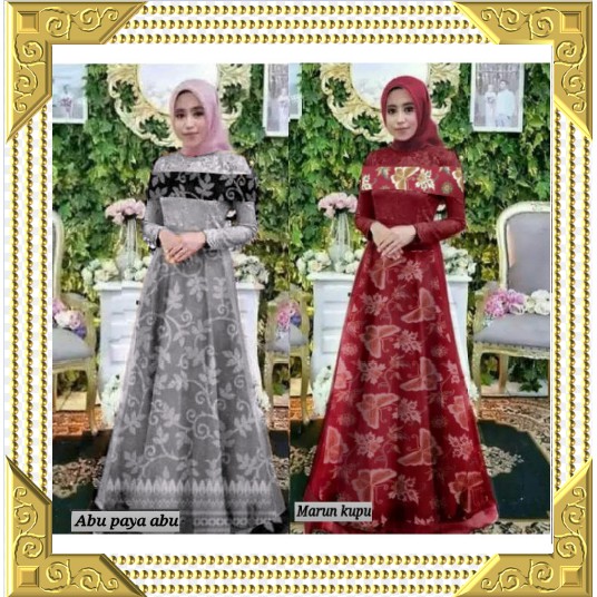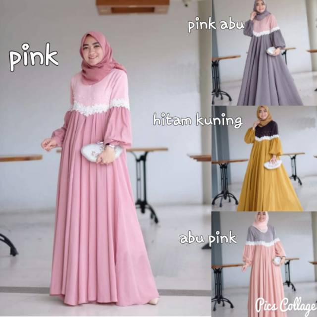 Gamis Wanita Kombinasi Renda Pink Abu Mustard Hitam Lengan Balon Bahan Moscrepe Mutiara Ld 100 Shopee Indonesia