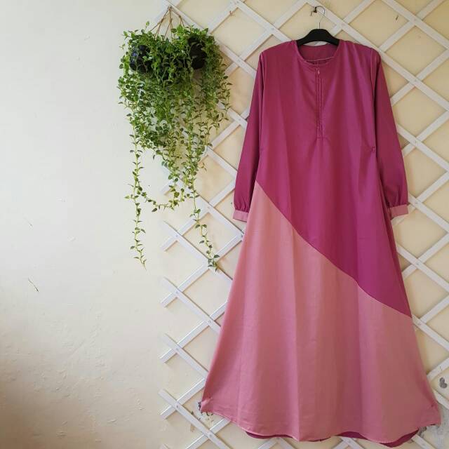 Gamis Katun Polos Kombinasi Modern Simpel Dusty Pink Model Pakaian Hijab Pakaian Jelita Model Pakaian