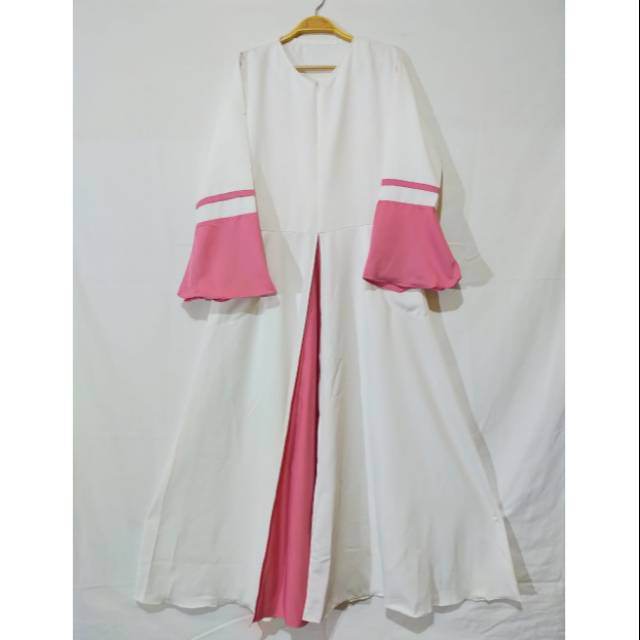 Gamis Katun Polos Kombinasi Modern Simpel Kancing Depan Dusty Pink Model Pakaian Gaya Hijab Pakaian Wanita