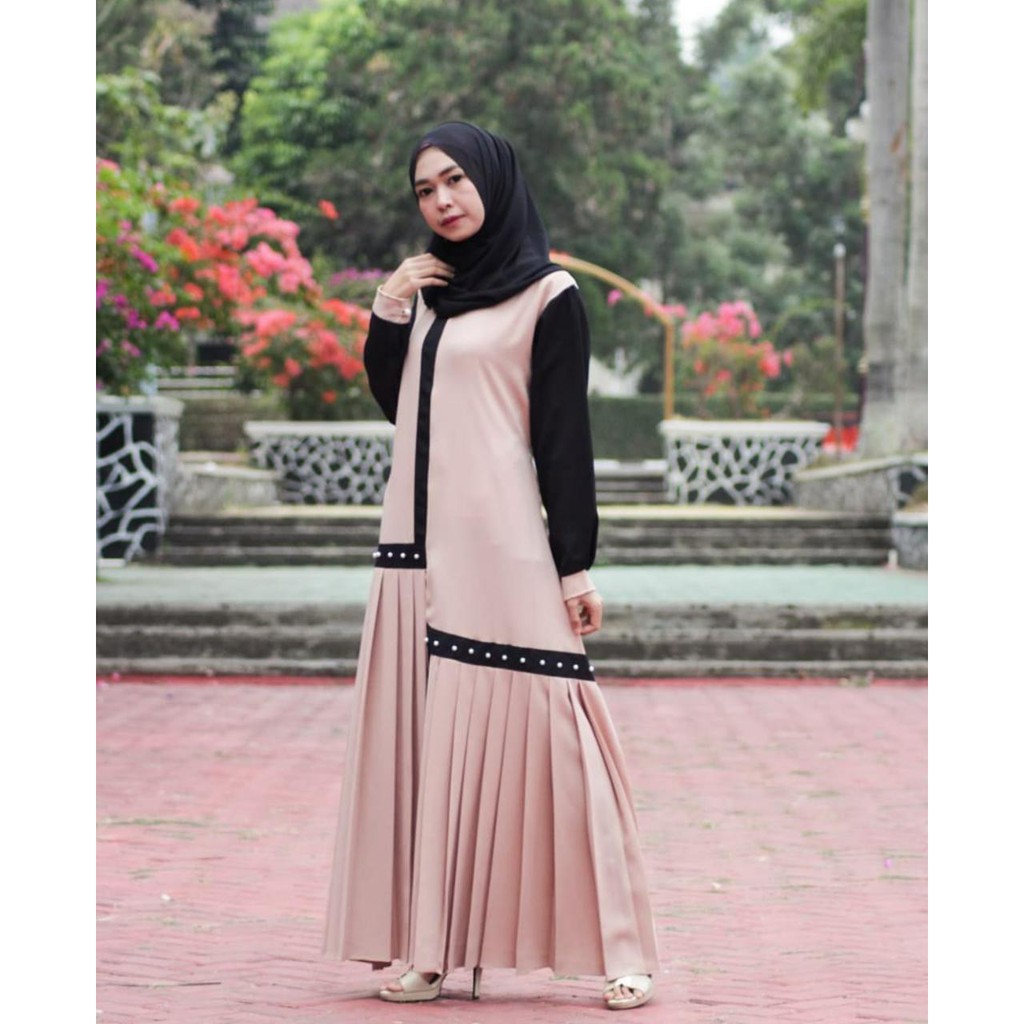 Abidah Maxi Dress Muslim Kekinian Gamis Modern Gamis Plisket Gamis Remaja Gamis Polos Gamis Kombinasi Plisket Gamis Rampel Gamis Kekinian Busana Muslim Wanita Baju Muslim Perlengkapan Sholat Fashion