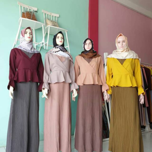 Titipan Elok Gamis Plisket Kombinasi Shopee Indonesia