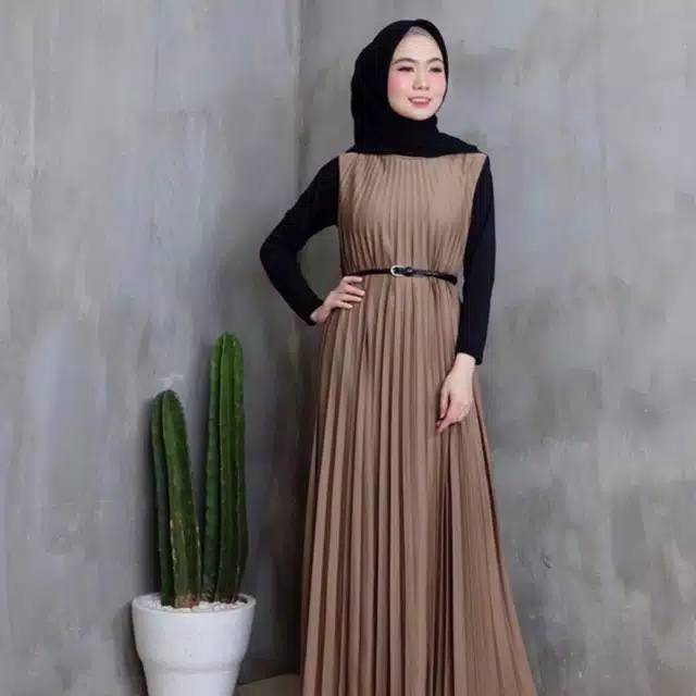Jual Promo Ainun Long Dress Gamis Plisket Tanpa Lengan Full Plisket Premium Army Kota Surakarta Produsen Seikova Tokopedia