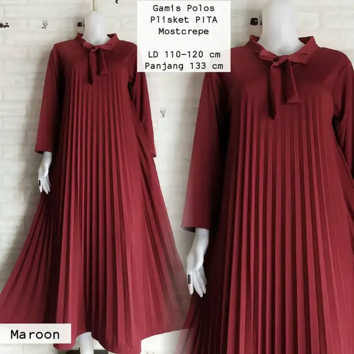 Jual Gamis Plisket Dasi Gamis Plisket Maroon Kota Depok Grosir Shoes Pasar Anyar Tokopedia