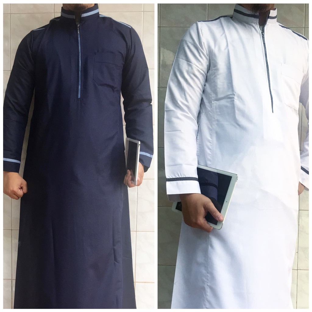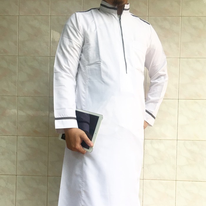 Jual Baju Muslim Jubah Gamis Pria Saudi Warna Putih List Hitam Termurah Di Lapak Naf Koleksi Bukalapak