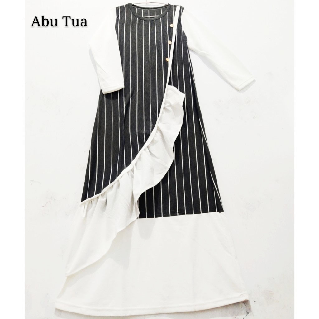 Jual Baju Muslim Gamis Murah Dan Cantik Gamis Putih Kombinasi Salur Kerut Abu Abu Grogol Semuamode Tokopedia
