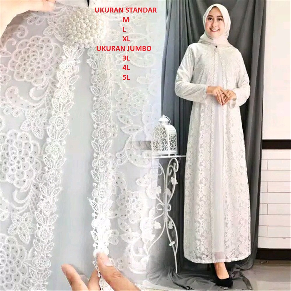 Dress Muslim Baju Muslim Wanita Baju Gamis Putih Broken White Sifon Kombinasi Brukat Shopee Indonesia