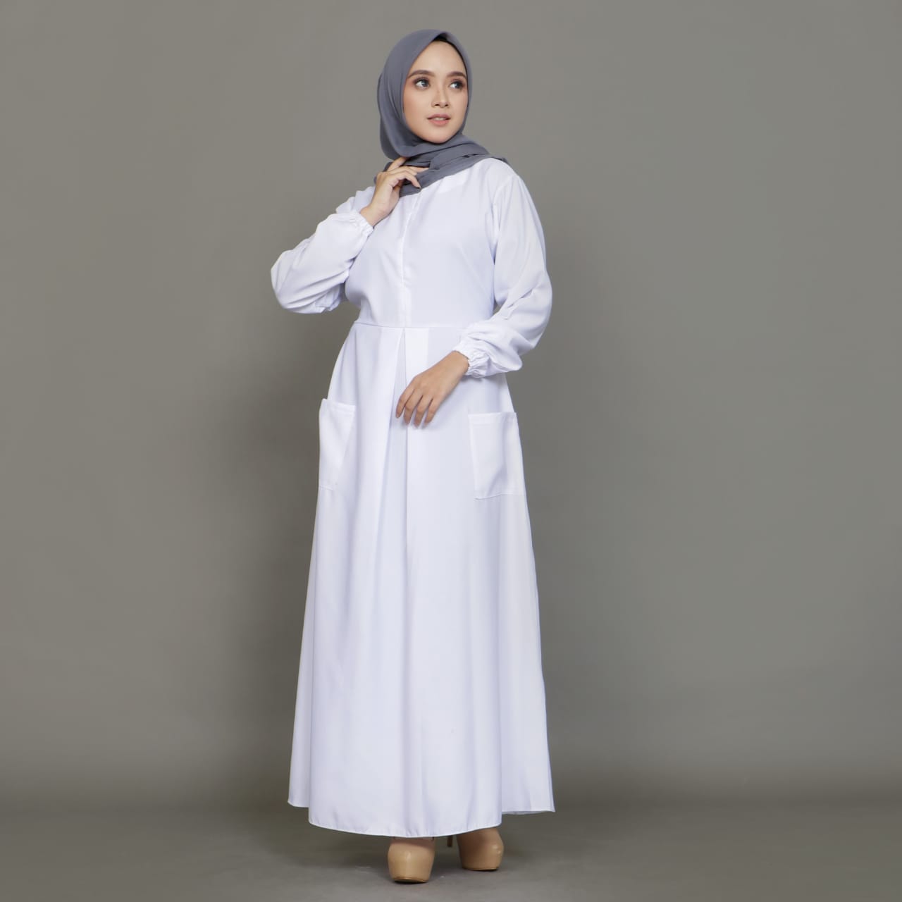 Baju Lebaran Syari Murah Gamis Terbaru Tahun 2020 Mewah Dress Remaja Meriah Modern Pakaian Premium Import Ibu Dewasa Fashion Muslim Wanita Kekinian Baju Gamis Syari Wanita Terbaru Lucia Dress White Putih Murah