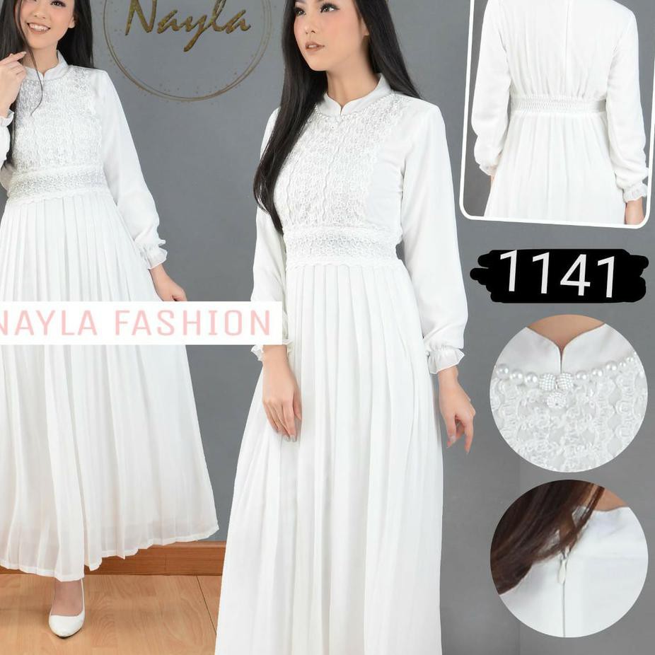 Terbaru Nayla Baju Gamis Putih Wanita Gamis Plisket Gamis Pesta Busana Muslim Brukat Lebaran Umroh M Shopee Indonesia