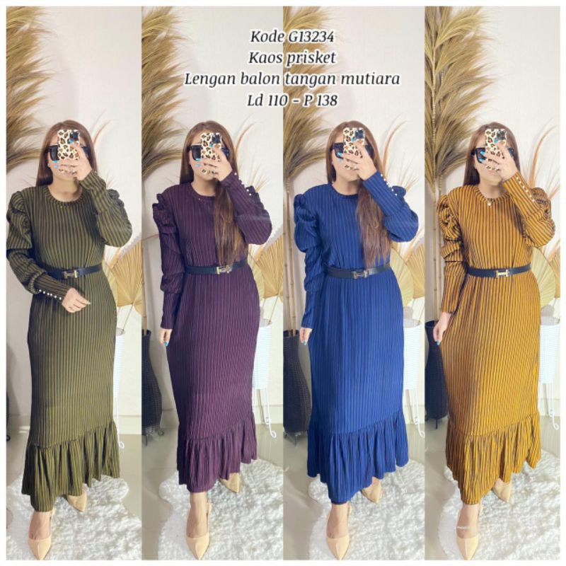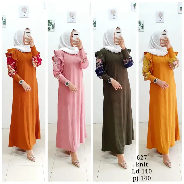 Youras Gamis Kaos Rajut Import Kombi Lengan Balon Mutiara Terbaru Terlaris Termurah Cod Lazada Indonesia
