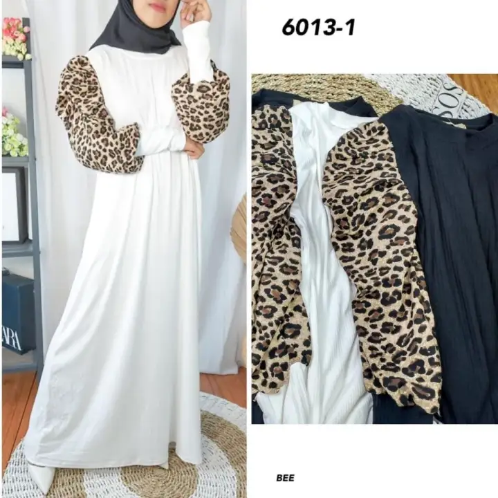 Gamis Import 279 Gamis Lengan Balon Motif Leopard Oversize Jumbo Ld 115 Xxl Gamis Belah Samping Shopee Indonesia