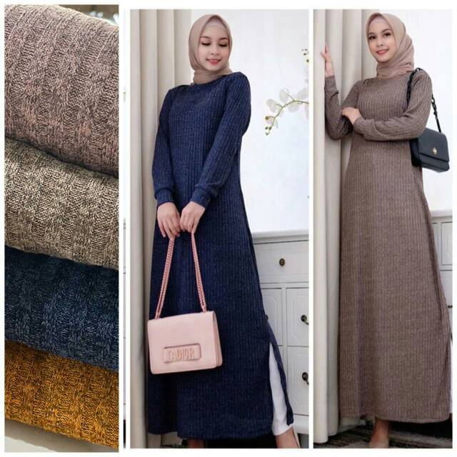 Jual Gamis Rajut Chanel Ori Dress Maxi Rajut Tren Muslimah Terbaru Kota Bandung Aiduoshop Tokopedia