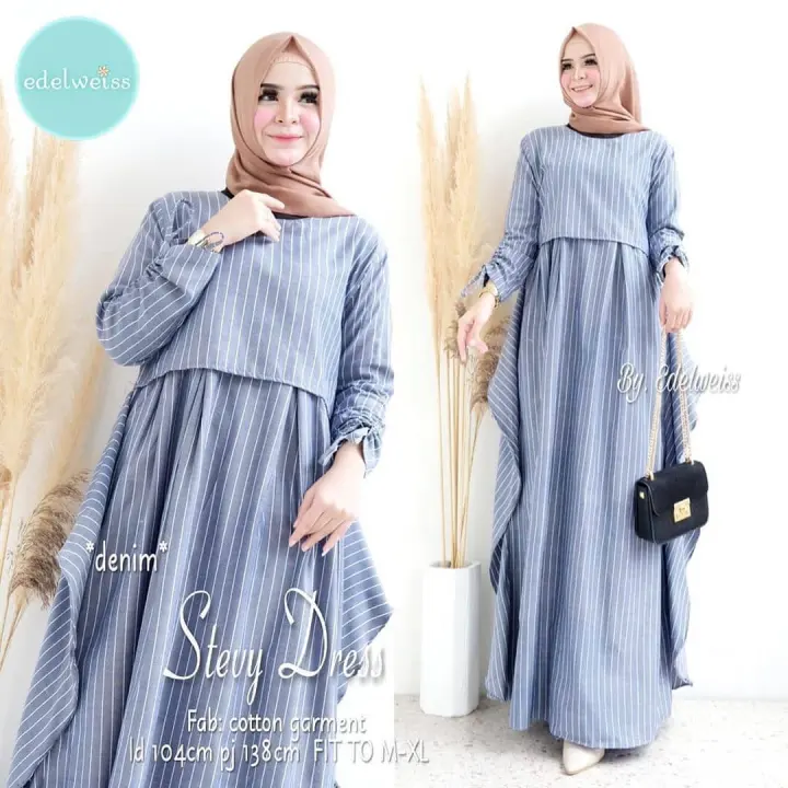 Stevy Dress Bl Bahan Katun Gamis Muslim Wanita Modern 2020 Gamis Wanita Terbaru Gamis Remaja Modern
