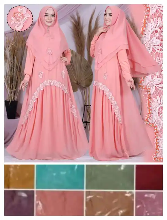 Jual Bigseller Gamis Syari Full Ceruty Bordir Tempel Mewah Cantik Plus Khimar Di Lapak Rindiani Bukalapak
