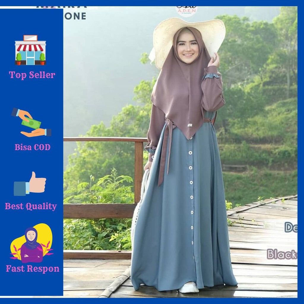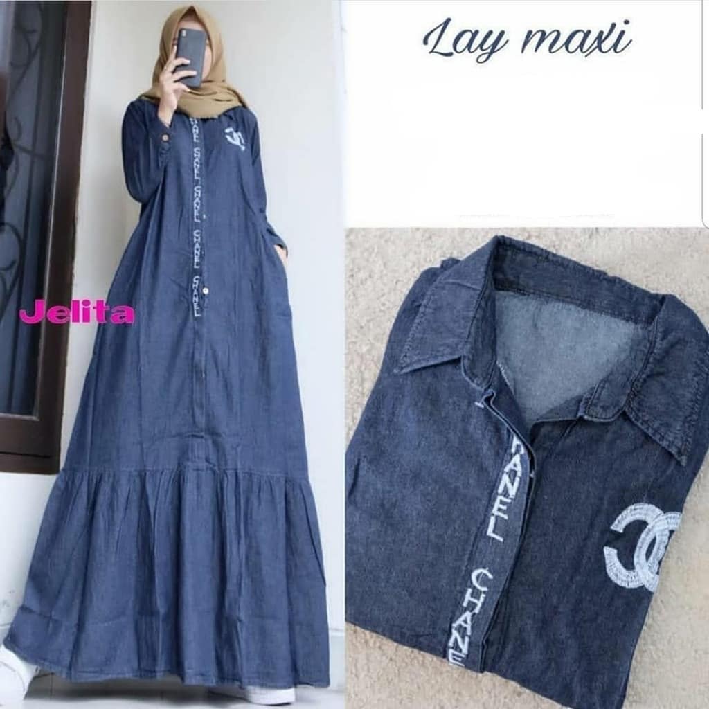 Gamis Dress Baju Maxy Jeans Denim Casual Trendy Santai Modern Wanita Cewek Muslimah Syari Hijab Shopee Indonesia