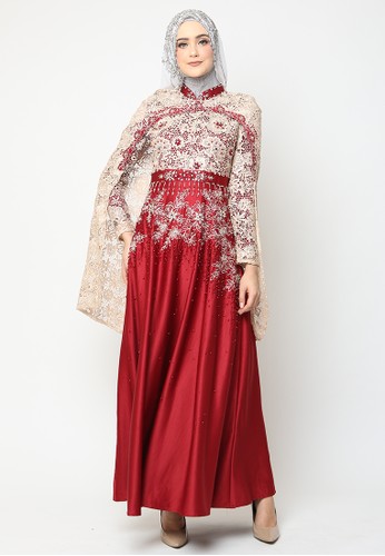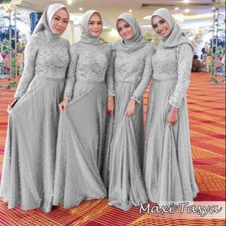 Gamis Pesta Satin Kombinasi Brokat Tile Premium Organza Dan Payet Cantik Mewah Dan Detail Sekalitop Shopee Indonesia