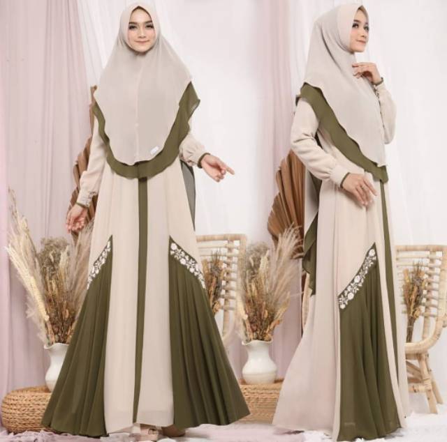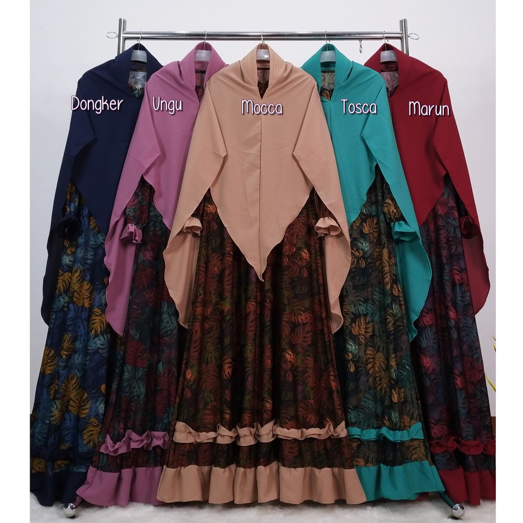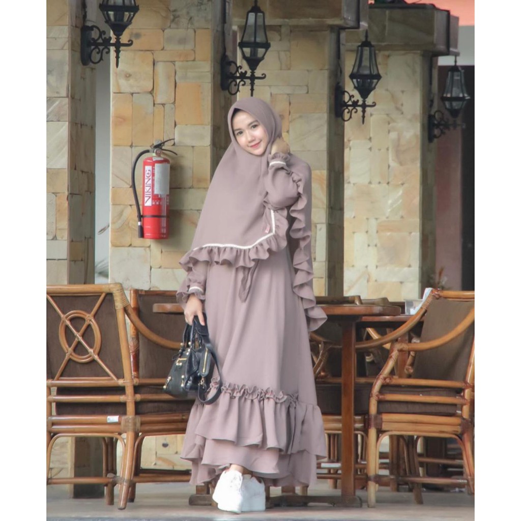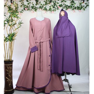 Gamis Set Syari Free Cadar Model Kancing Khimar Jilbab Hijab Instan Antem Muslimah Fashion Style Shopee Indonesia