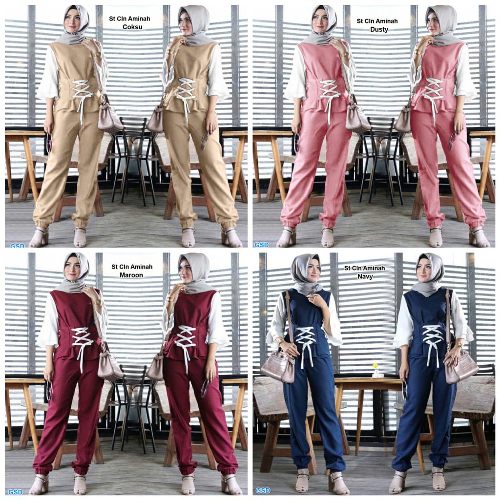 Setelan Celana Panjang Gamis Wanita Kerja Kuliah Murah Kulot Atasan Mariyam 11 Set Shopee Indonesia