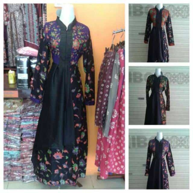 Baju Gamis Resleting Kombinasi Warna Renda Ulir Ulr4121 Supplier Baju Gamis Terbaru Bahan Sifon Spandek Bahan Jerse Moslem Fashion Fashion Dresses Model Dress