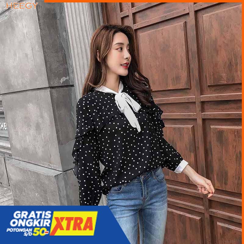 Banting Harga Soigni Baju Wanita Sheer Blouse Motif Polkadot Sifon M S Terbaru Di Lapak Serrano Store Bukalapak