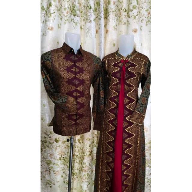 Set Couple Sarimbit Saffa Kemeja Songket Pria Dewasa Gamis Songket Motif Matahari Batik Jupri Wanita Lazada Indonesia