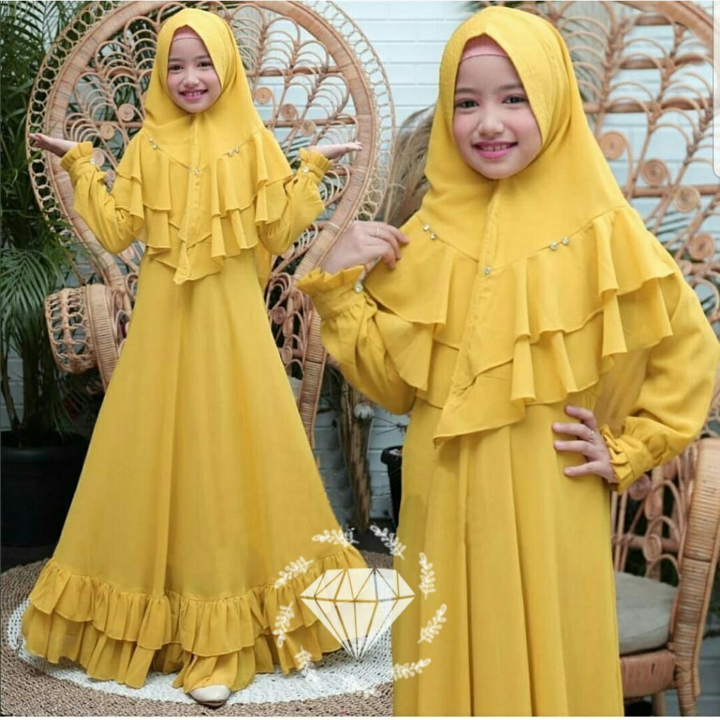 Jual Set Baju Gamis Syari Anak Embos Terbaru Kids Salwa Emboss Kuning Umur 9 12 Th Di Lapak In Sky Store Bukalapak