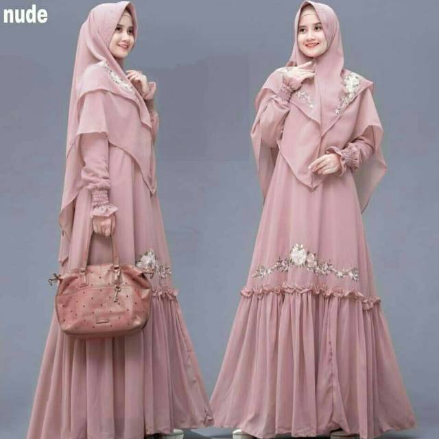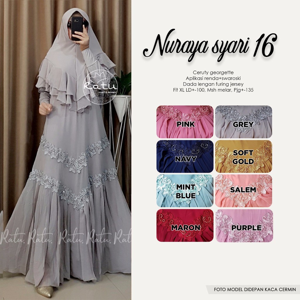 Nuraya Syar I 16 I Gamis Cantik Bahan Ceruty Georgette Cocok Buat Kondangan I Baju Gamis Set Shopee Indonesia