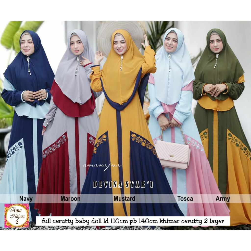 Set Gamis Syar I Devina Dress Full Baby Doll Khimar 2 Layer Baby Doll Ld 110 Pb 140 Bordir Shopee Indonesia