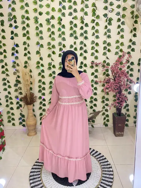 Elsa Syari Dusty Pink Bubble Pop Premium Gamis Syari Lebaran Olshop Fashion Olshop Muslim Di Carousell