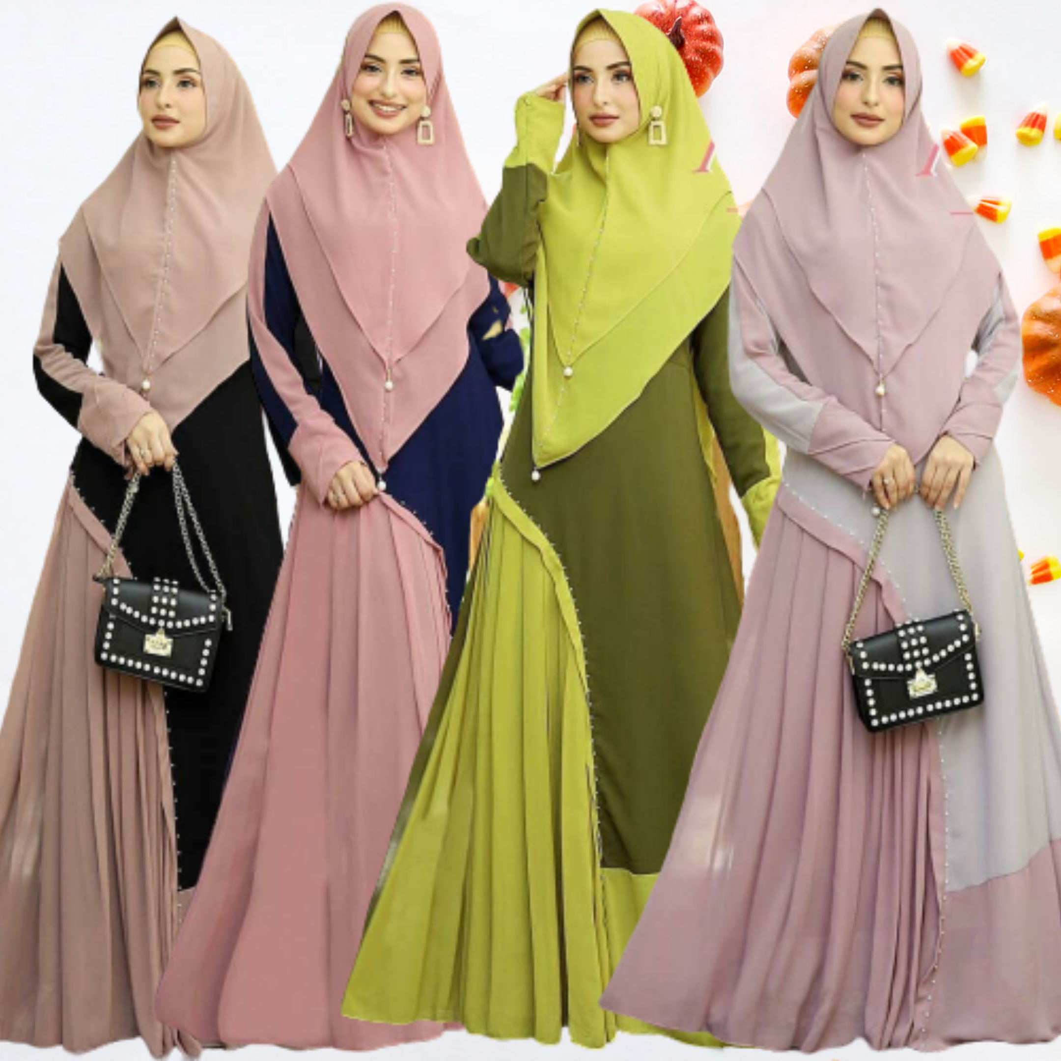 Baju Gamis Eliza Syari Set Khimar Gamis Syari Polos Set Khimar Long Dress Muslim Simple Elegan Fashion Baju Gamis Casual Remaja Dress Wanita Muslimah Modern Terbaru 2020