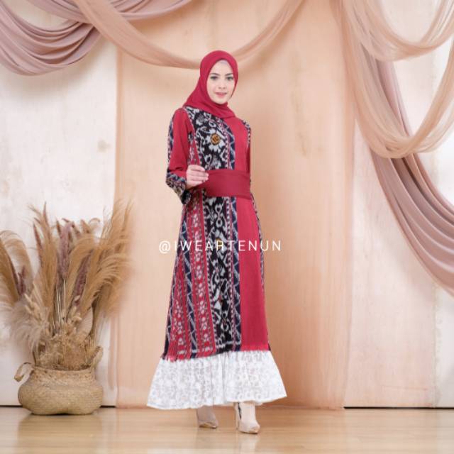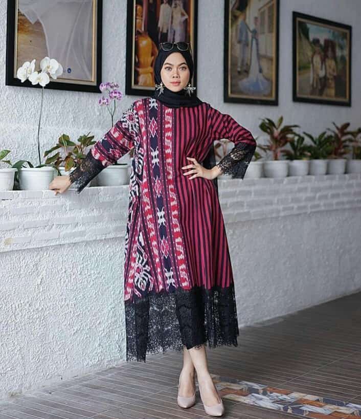 Model Gamis Kombinasi Tenun Ikat Diary Hijaber