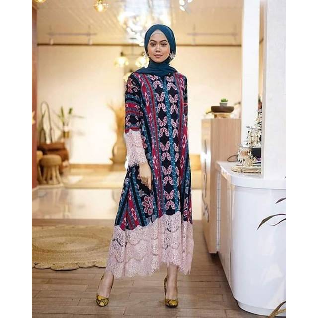 Gamis Brokat Kombinasi Batik Yang Sedang Populer