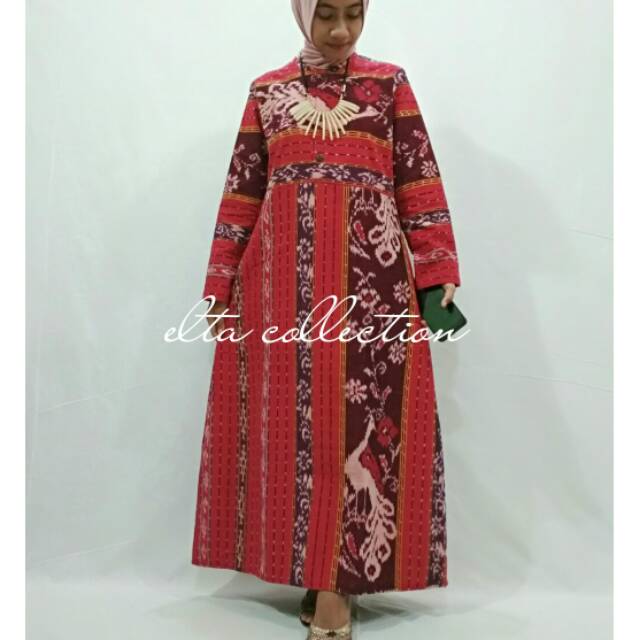 Model Gamis Tenun Troso Jepara Terbaru Etnik Kombinasi Polos Cantik Istana Tenun Jepara Online Shop Jual Kain Baju Tenun Ikat Troso Jepara Original Handmade