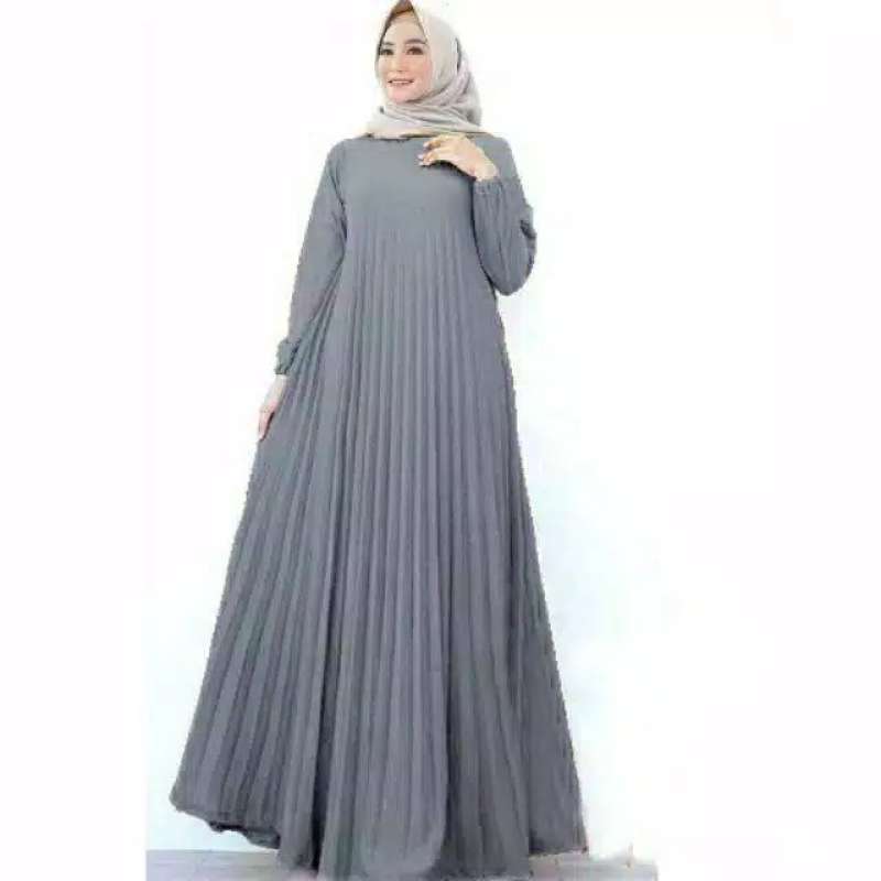 Dinar Baju Gamis Wanita Terbaru Baju Muslim Wanita Plisket Abu Tua Shopee Indonesia