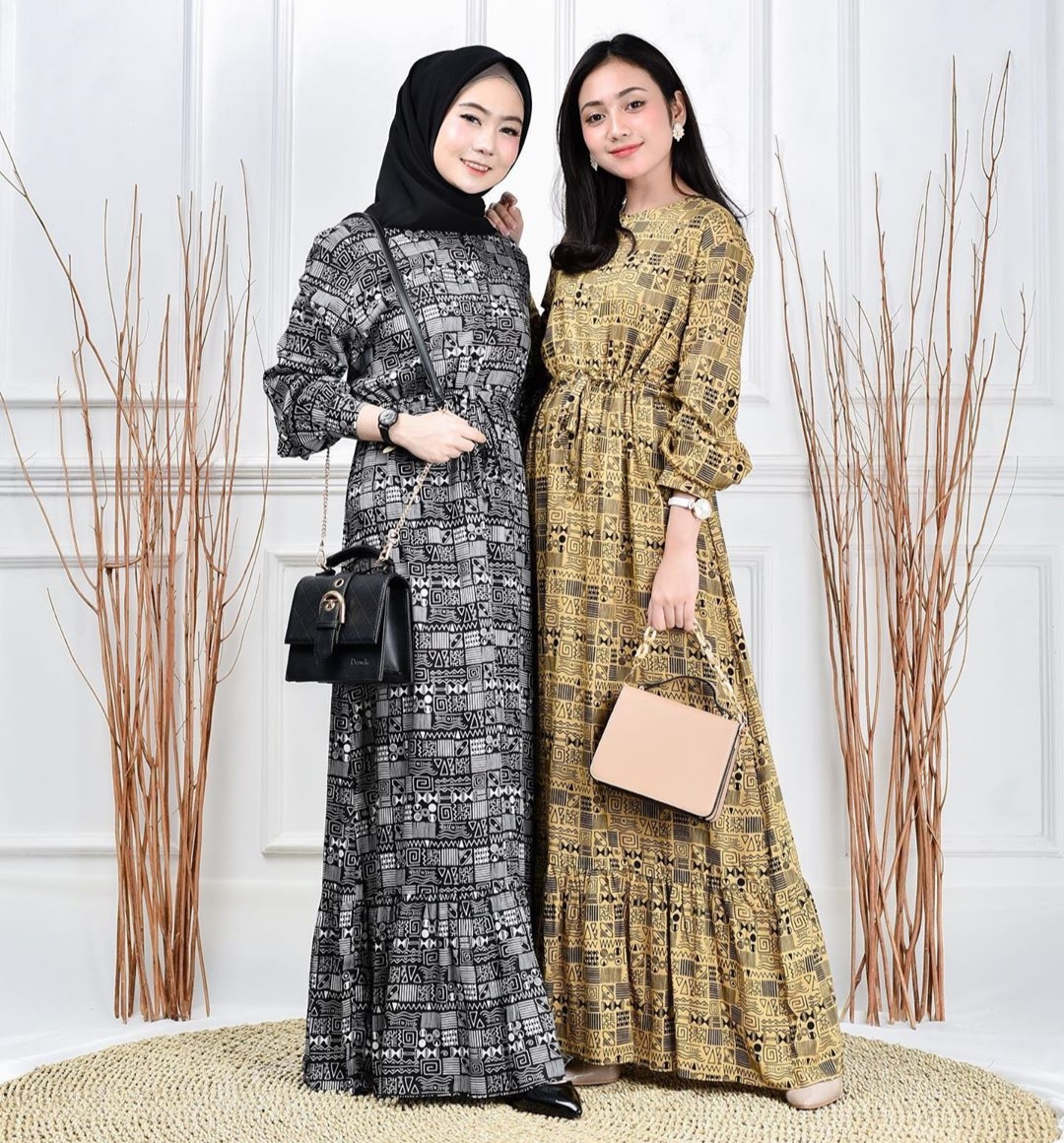 Promo Gamis Motif Abstrack Terbaru Marlina Maxy Bahan Katun Rayon Viscose Premium Shopee Indonesia