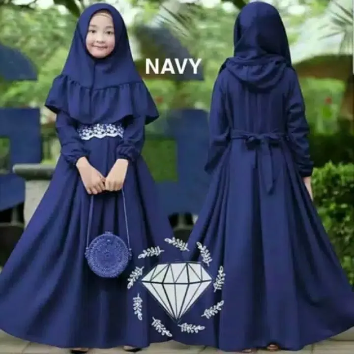 Gamis Anak Perempuan Model Stela Cantik Warna Navy Terbaru Baju Muslim Anak Perempuan Warna Navy Shopee Indonesia