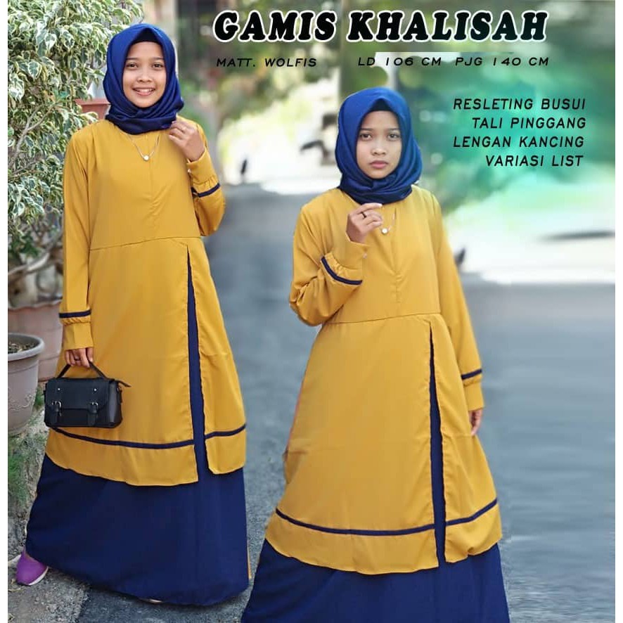 Gamis Wolfis Premium Twotone Kombinasi 2warna Gamis Syar I Shopee Indonesia