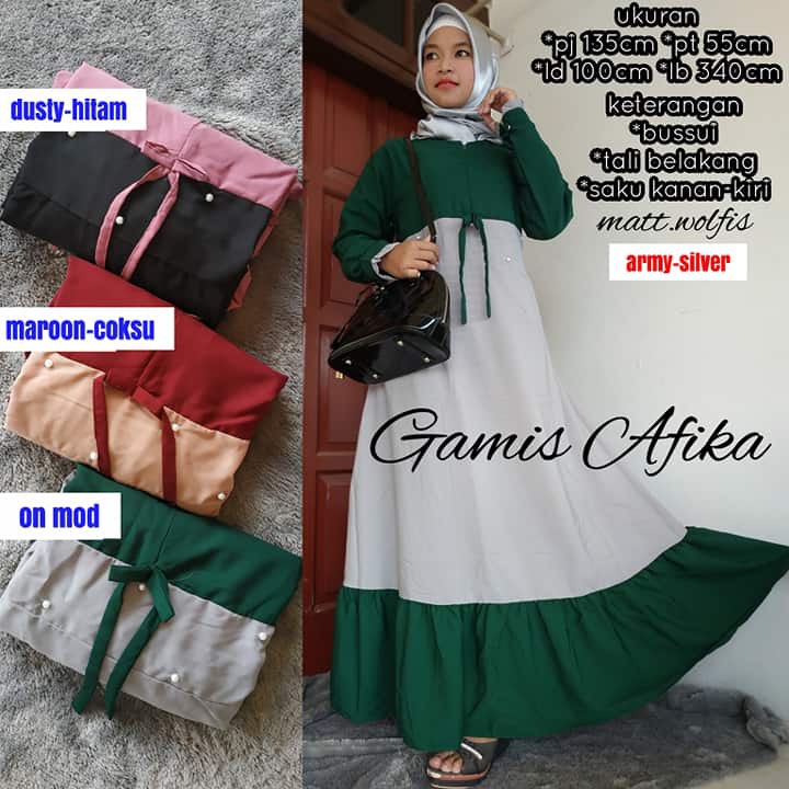 Gamis Wolpis Rempel Mutiara Gamis Rempel Wolfis Kombinasi Rempel Mutiara Dua Warna Gamis Wolfis Afik Shopee Indonesia