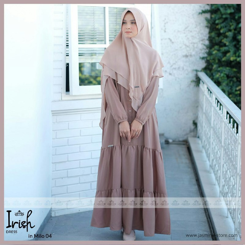 Irish Dress Jasmine Milo Gamis Syari Terbaru Wollycrepe Caltri Nyaman Adem Polos Busui Shopee Indonesia