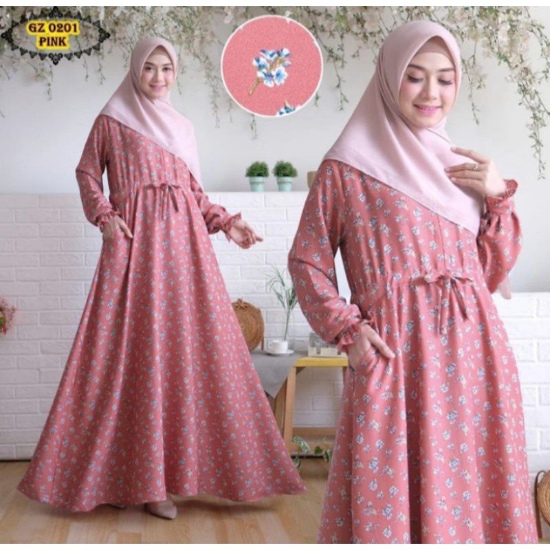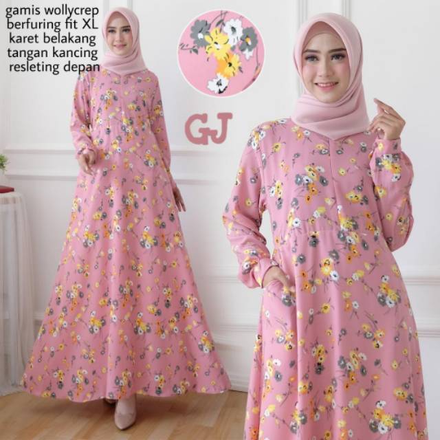 Jual Gamis Wollycrepe Motif Daun Di Lapak Elza Aizha Bukalapak