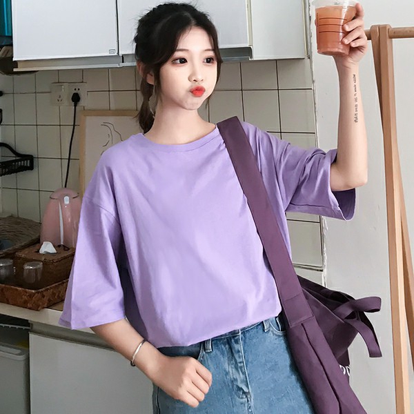 Kaos Oblong T Shirt Simple Sederhana Polos Lengan Pendek Longgar Nyaman Impor Korea Wanita Remaja Shopee Indonesia
