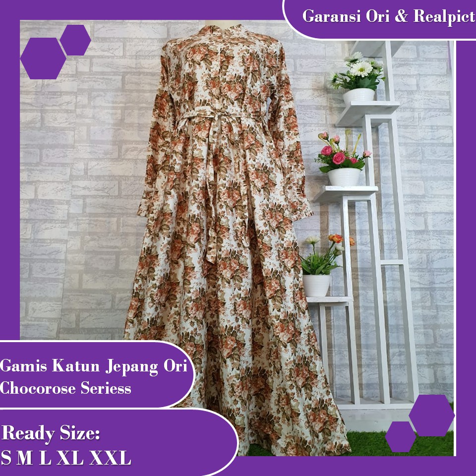 Model Baju Gamis Katun Jepang Motif Bunga G10106 Cantik November 2016 2017 Gaun Lengan Panjang Model Pakaian Hijab Model Pakaian