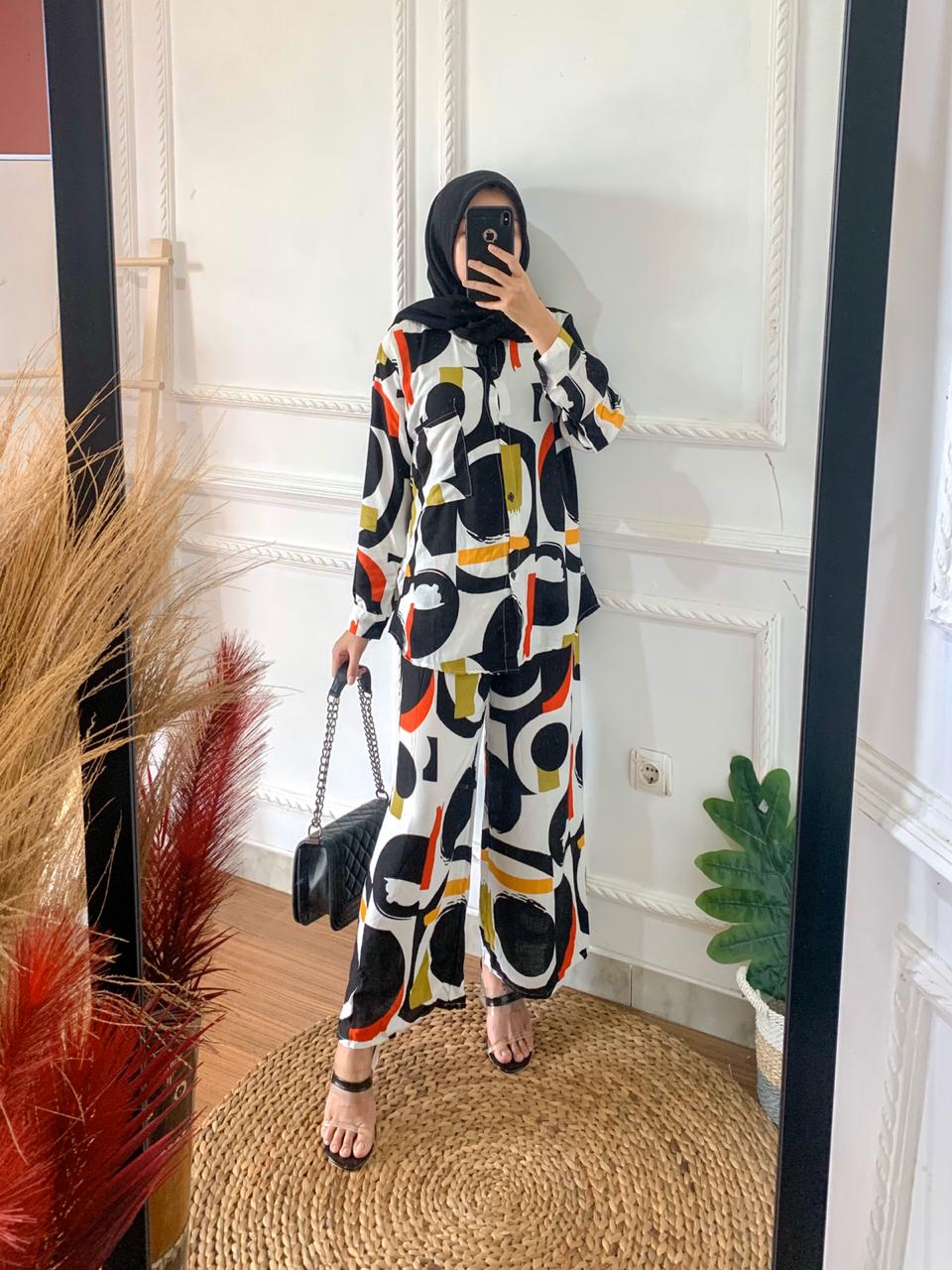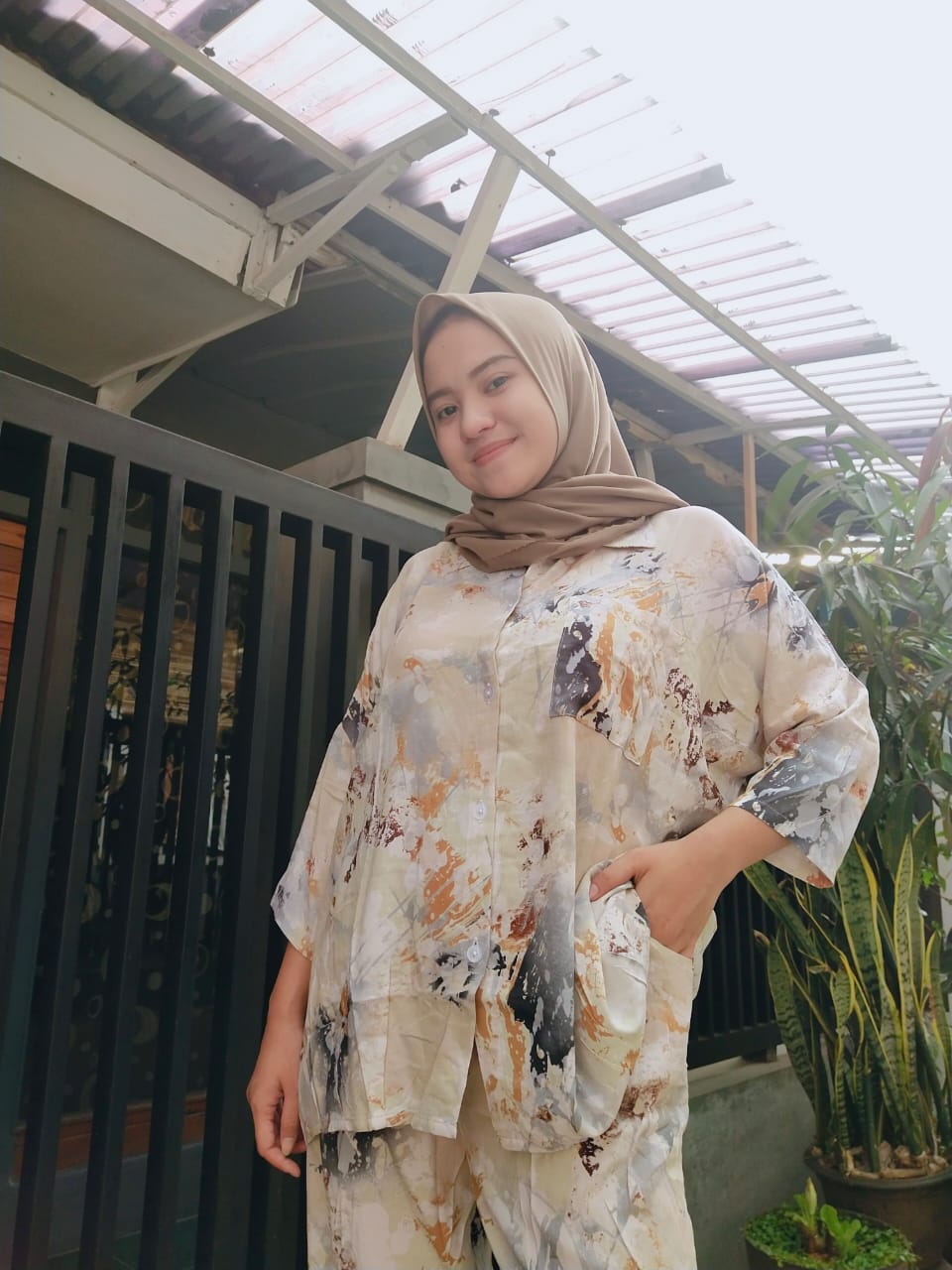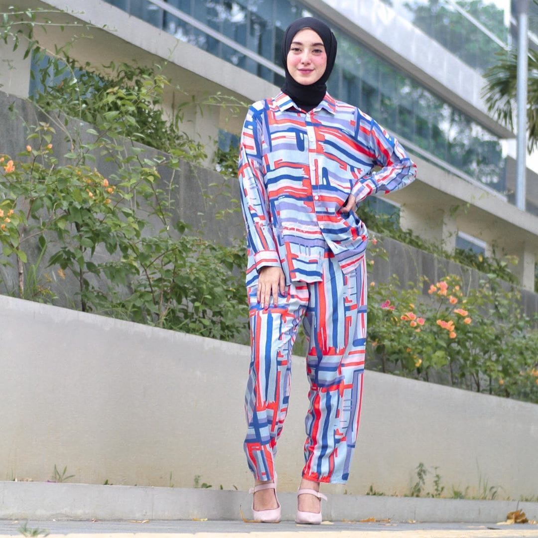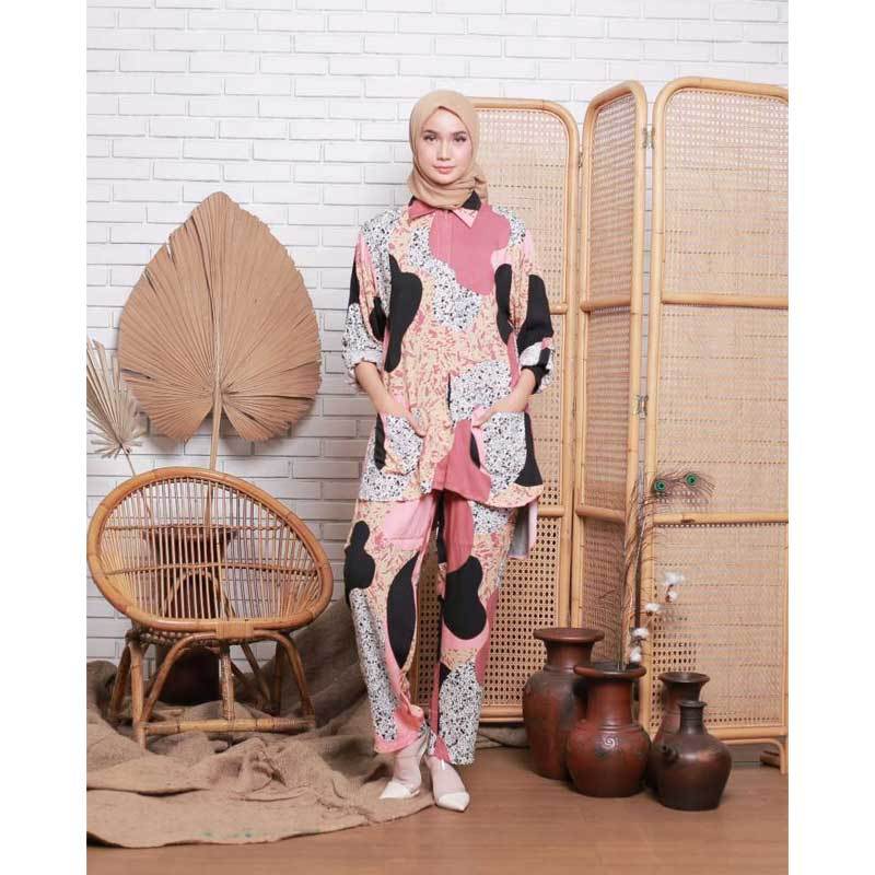 Arsyla Set Jumbo Model Batwing Daily Set Baju Setelan Wanita Piyama Set Celana Setelan Atas Bawah Hommy Set Daily Set Motif Abstrak Baju Setelan Muslim