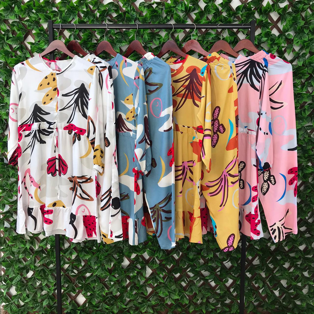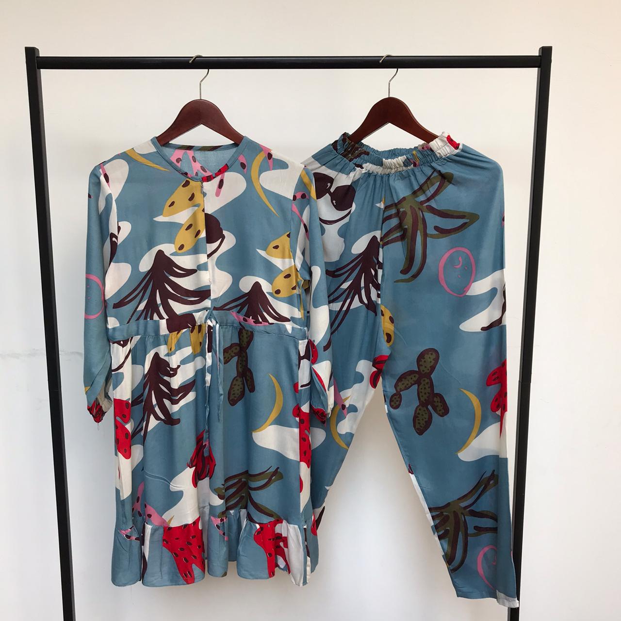 Terbaru One Set Rayon Setelan Motif Abstrak Terbaru Wanita Cod Realpict One Set Pajamas Lengan Pendek Setelan Atas Bawah Wanita Lengan Panjang Lazada Indonesia