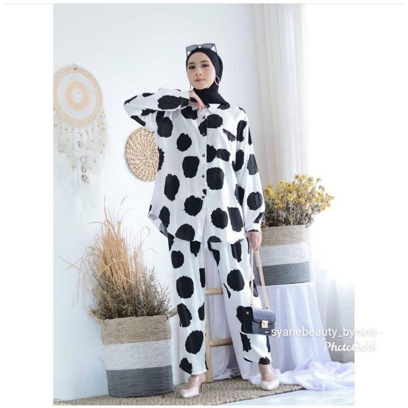 Baju Setelan Wanita Terbaru 2020 One Set Poladot Polos Kekinian Katun Rayon Pion Shopee Indonesia