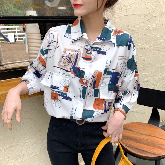 Fashion Wanita Korea Longgar Retro Print Kemeja Lengan Pendek Kasual Kemeja Polo Shopee Indonesia