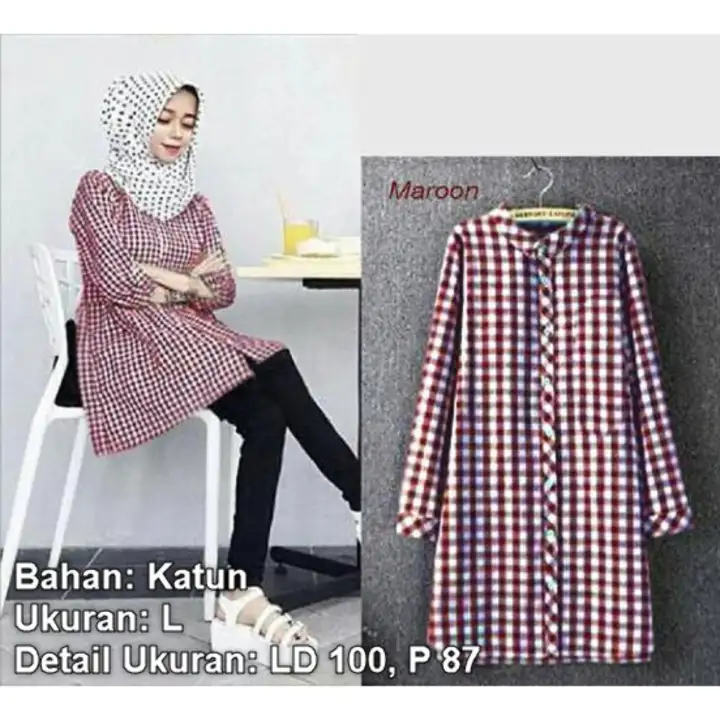 Kemeja Tunik Wanita Lengan Panjang Kotak Msr050 Baju Santai Kasual Blouse Kerja Formal Atasan Muslimah Pakaian Hijab Muslim Blus Gamis Terusan Rnjunix Lazada Indonesia