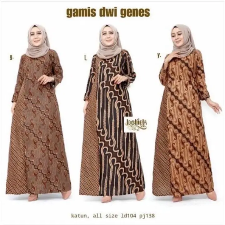 Gamis Dwi Genes Batik Sogan Kombinasi Batik Gamis Batik Maxi Dress Muslim Pakaian Muslim Batik Casual Lazada Indonesia