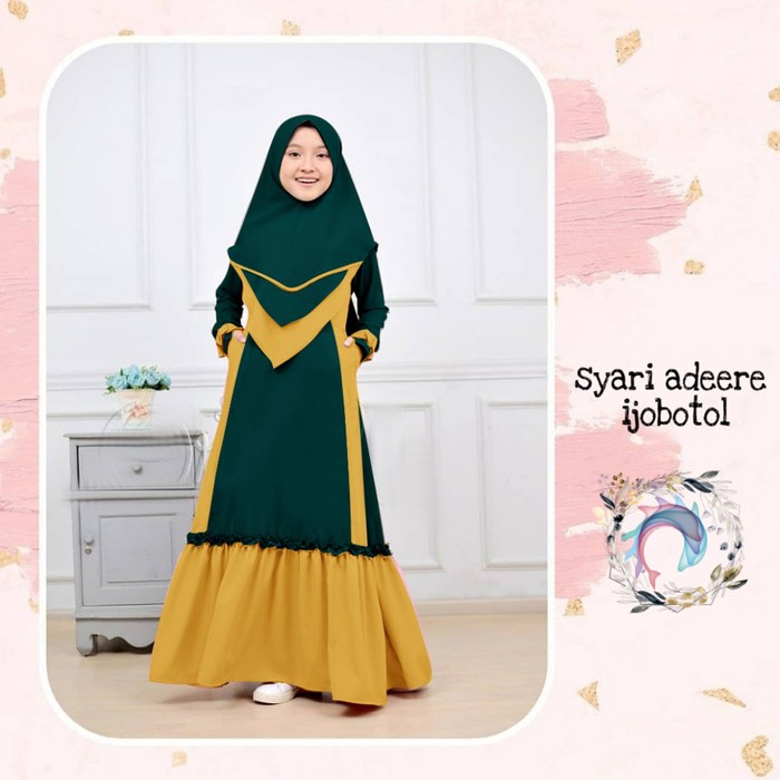 Jual Tk0967 Baju Gamis Anak Perempuan Kombinasi Hijau Botol Renda Pita Terbaru 2020 Shahia Hijab Februari 2021 Bajuyuli